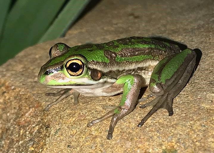 An endangered green and golden bell frog (Litoria aurea) produced from cryopreserved sperm. Photo: Cassandra Bugir